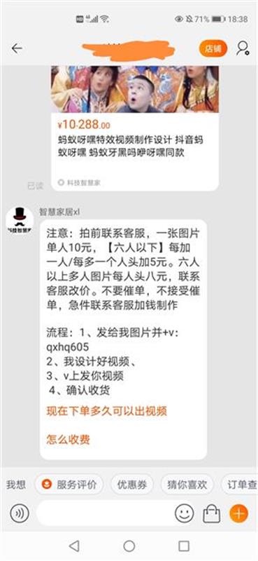 其中一店铺客服告诉记者,此前店铺主要承接视频剪辑业务,近期因“蚂蚁呀嘿”类型视频比较火爆,才开始网上宣传制作。