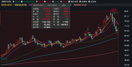 或许正是基于这种逻辑,即使海底捞业绩巨亏、暴跌,也让资本市场疯狂追捧。3月1日,海底捞股价大涨近10%,总市值达到3649亿港元。2020年至今,海底捞股价的累计涨幅更是超过120%,市值累计增长1934.50亿港元,约合1612亿元人民币。
