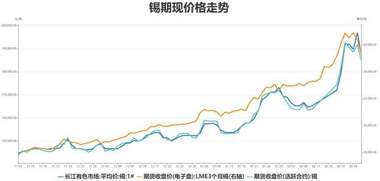 2月份,锡价呈现大幅冲高回调走势。2月中上旬,由于疫苗接种工作陆续推进,全球确诊病例增速持续放缓,加之美国1.9万亿美元刺激计划有望推出,带动市场风险情绪升温。同时上游缅甸政治形势不确定性增加,且国内银漫矿业停产自查,使得锡矿供应紧张局面加剧,加之海外产量下降,库存走低供应紧张,提振锡价大幅拉升。至2月下旬,美国经济数据强劲,市场对美联储提前加息预期升温,加之国内锡库存持续增加,锡价上行遭遇阻力。