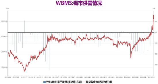 世界金属统计局(WBMS)公布的数据显示,2020年1-12月全球锡市供应短缺1.22万吨。全球报告总库存较2019年未水平低5300吨。2020年1-12月,全球报告精炼锡产晶较去年同期增加4000吨。中国表观需求较去年同期增加38%。2020年1-12月,全球锡需求量为38.36万吨,较去年同期增加4.6%。日本需求量为2.02万吨,较2019年下滑19%。2020年12月,全球精炼锡产量为3.66万吨,消费量为3.58万吨。