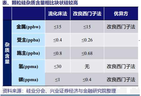 不过,颗粒硅的不足也比较明显,主要体现在杂质含量高、产能不足、生产过程危险。