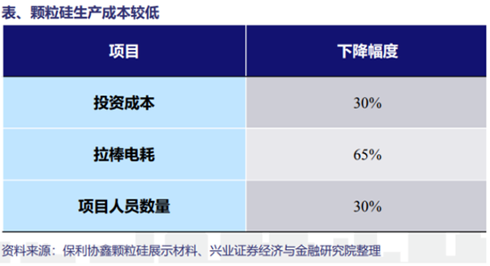 市场追捧,颗粒硅有什么优势?主要原因则是其生产成本较低,低于传统硅料,投资成本、拉棒电耗、项目人员数量均有大幅下降,且技术壁垒强。此外,目前颗粒硅才刚开始商用,其市场占有率不足10%,可能将来有很大的提升空间,