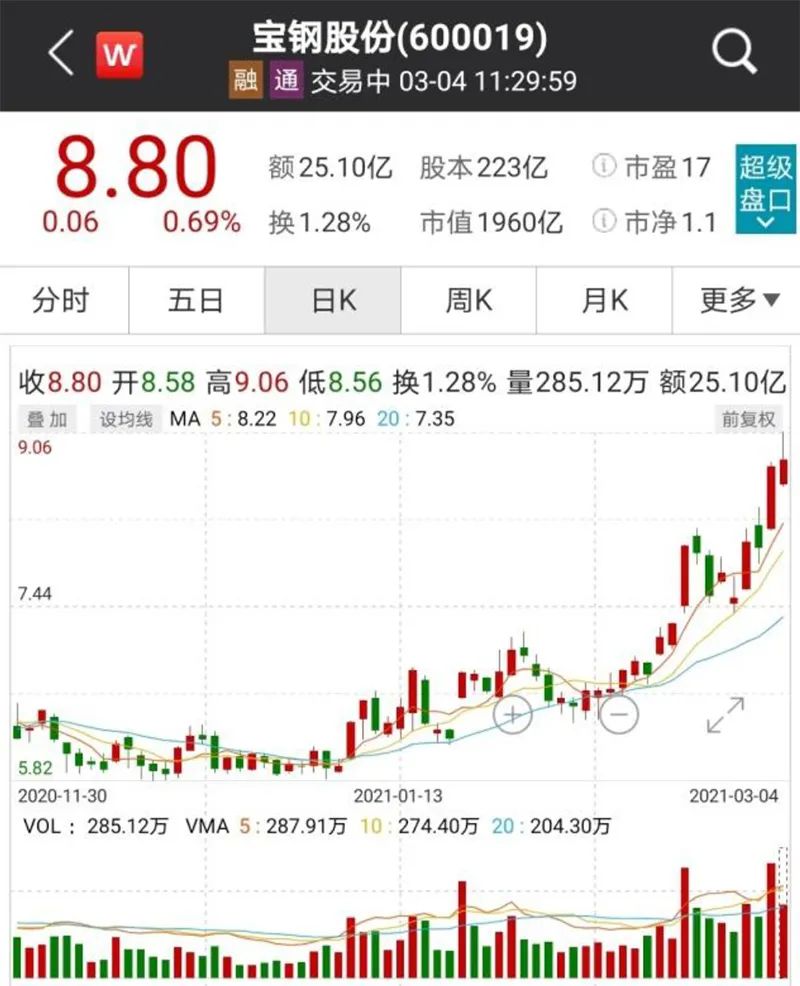 华泰证券随即跟进报告,认为宝钢股份此次业绩预告高于前期预期,主要原因在于下游制造业、消费领域强势表现,带动板卷价格上涨。即使原料铁矿价格同比上行,热卷吨毛利也表现不差,冷卷吨毛利表现抢眼。