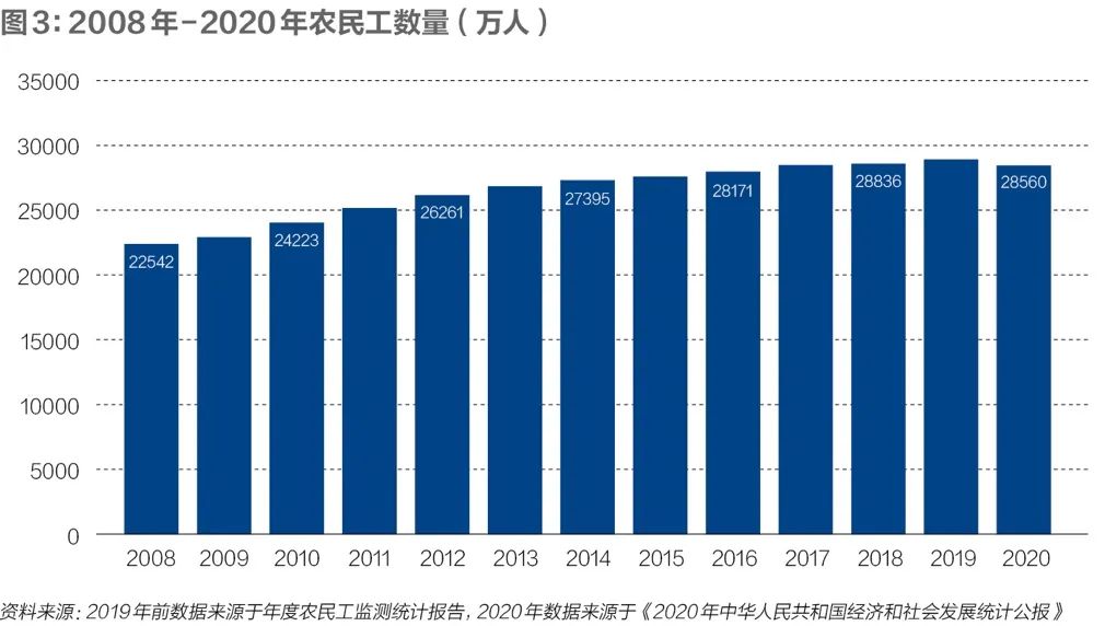 虽然目前已经有2.8亿在本乡镇就业和跨乡镇外出打工的农业转移人口(图3),但是在农村至少还有2亿左右的农村剩余劳动力。