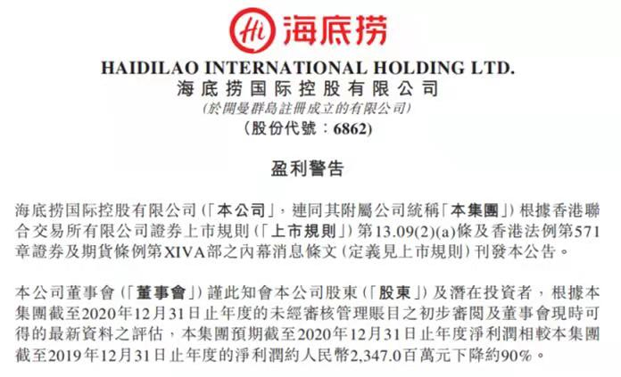 首先,海底捞去年净利润较2019年下降约90%,这表明2020年净利润只有2.35亿。此外,相关数据显示,海底捞2020年上半年亏损9.65亿元,那么下半年净利润约为12亿。