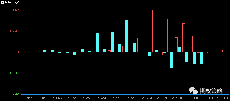 从3月持仓变化来看,认购在3700处增仓最大,认沽在3500处增仓最大,50ETF支撑压力均有下移迹象。