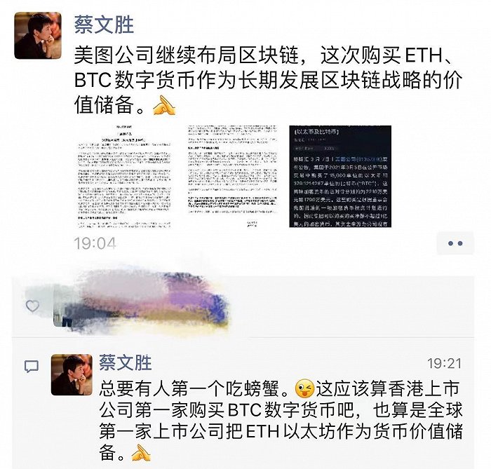 蔡文胜还强调,“总要有人第一个吃螃蟹“,美图应该算第一家购买BTC数字货币的香港上市公司。