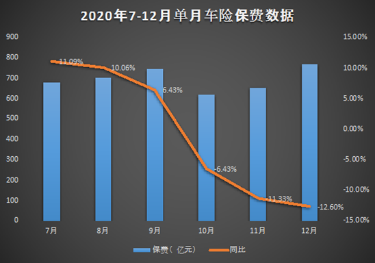 自车险综改实施以来,车险单月保费增幅开始变为负值,且在10-12月期间,下降幅度明显加大。