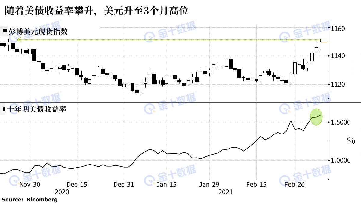 “随着收益率因经济增长和通胀预期提高而继续走高,且当下市场普遍在做空美元,美元的反弹可能会很猛烈。因此,整体而言,这对于更广泛的大宗商品和新兴市场资产而言可能是消极的。”