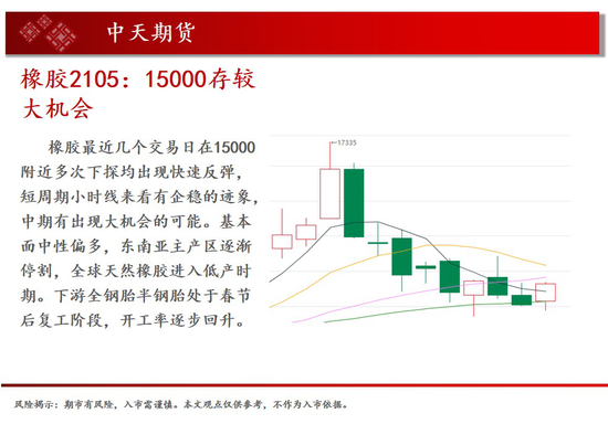操作建议:橡胶最近几个交易日在15000附近多次下探均出现快速反弹,短周期小时线来看有企稳的迹象,中期有出现大机会的可能。