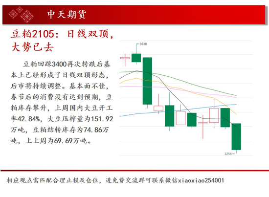 基本面概述:基本面不佳,春节后的消费没有达到预期,豆粕库存攀升,上周国内大豆开工率42.84%,大豆压榨量为151.92万吨,豆粕结转库存为74.86万吨,上上周为69.69万吨。
