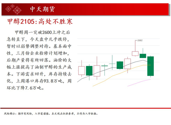 操作建议:甲醇周一突破2600上冲之后急转直下,今天盘中几乎跌停,暂时以弱势调整对待。