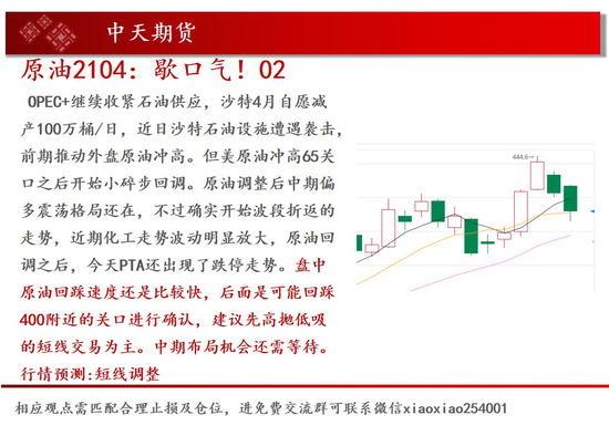 操作建议:盘中原油回踩速度还是比较快,后面是可能回踩400附近的关口进行确认,建议先高抛低吸的短线交易为主。中期布局机会还需等待。行情预测:短线调整