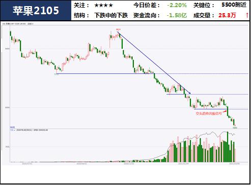 苹果走货较慢,并且冷库库存目前仍处于历史最高位,去库存压力大,市场担忧情绪浓厚。大周期空头趋势明显,今日盘中继续走跌,空单持有中。