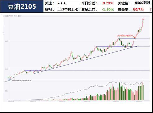 市场大部分品种呈现资金流出状态,盘中也出现明显回调,铁矿大跌冲击跌停,化工系减仓下行,上涨量能进一步削弱,目前多头结构明显的油脂板块建议多单锁定利润,关注调整幅度,商品指数看目前仍是震荡结构,并未出现明显的空头信号,短期仍建议降低预期短线操作为主。
