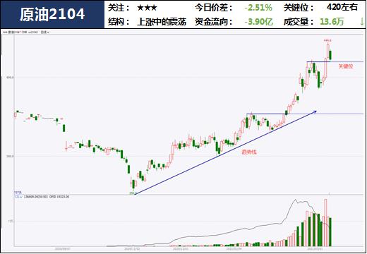 前期受到OPEC维持减产、美国经济复苏势头良好的支撑,原油持续大涨,利好基本兑现,多头平仓离场导致原油出现回落。今日盘面以震荡为主,收盘价仍高于前期高点,总体来看仍处于上行通道,看涨预期不变。