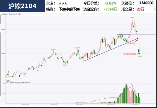 周六美国非农数据超预期增长,美国经济复苏情况良好,美债收益率与美元指数高企,有色金属承压。受到上周市场传闻高冰镍投产消息,镍接连大跌,盘中延续跌势,目前空头趋势明显空单可持有,若盘中继续走弱,新仓可轻仓试空。