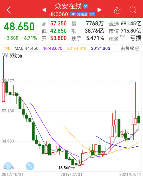 甚至还被众安保险赶超过,市盈率还不到5倍,5年靠盈利就回本了。