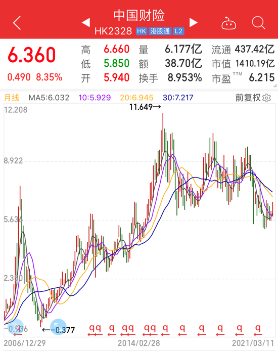 比起国寿的市场地位和盈利,确实是被大大低估了呀!股价自2007年到了市值高峰后,从此一路下行,论悲惨榜,少不了中国人寿的一席之地。