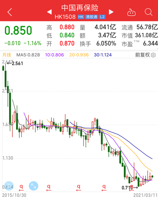 众安在线,保费只有人保的三十分之一,市值最高峰却高达1158亿港元,和人保市值相当。最低的时候,市值也保持330亿港元之上,真是一个中再集团打底。