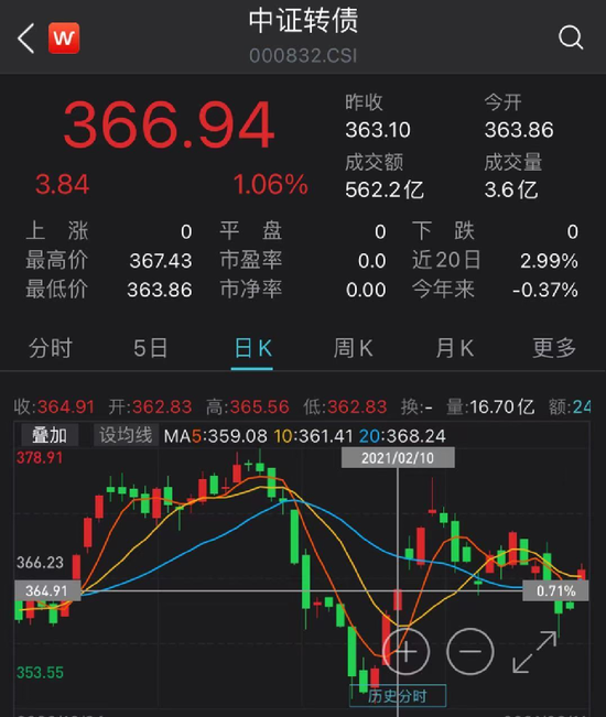 前段时间大盘的剧烈震荡,让大众的焦点落在了可转债市场上。继昨日中证转债结束四连跌后,截至收盘,今日中证转债指数涨1.06%,报366.94点,创逾一个月内最大涨幅。今日逾7成可转债上涨,成交额超500亿元再创两个月新高,可转债的整个市场似乎有所回温。