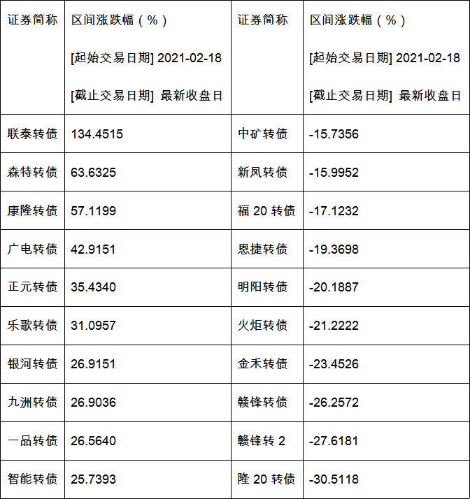 与此同时,也有不少可转债大幅下跌,隆20转债、赣锋转2、赣锋转债等多只可转债跌幅超过20%。
