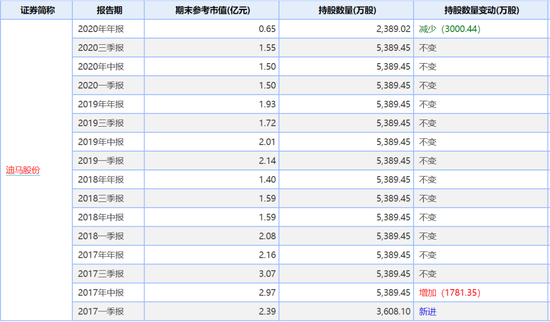 可到了年底,证金持有迪马股份的股份数量降至2389.02万股,占总股本的比例为0.93%,成了第9大股东,减持了约3000万股。