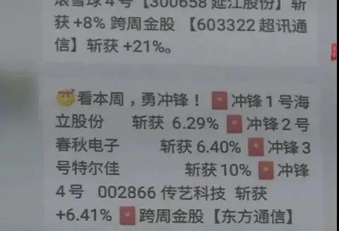 实际上,这三支股票都是近期比较激进活跃、波动大的,大涨大跌的概率高,带有赌的性质。一旦3支股票中有涨的,业务员们就会第一时间把成功上涨的股票截图发给客户,对于跌的股票则绝口不提,反复营造预测准确的假象。