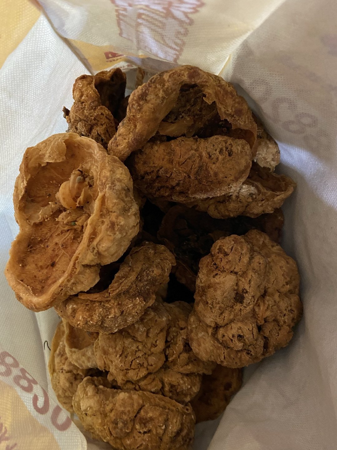 2月21日上午11点左右,澎湃新闻记者假称有大量“鲜货”资源,在邳州火车站附近的一处肯德基内,见到了胎盘加工贩卖者刘义。他拿出用黑色塑料袋裹住的两个胎盘干货,让记者验货。