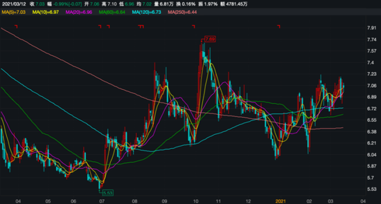 2014年4月,海澜之家借壳凯诺科技上市,其上市之初市值接近450亿元,6年时间过去,截至2021年3月12日,其市值仅为304亿元,缩水32.4%,报收于7.03元/股。