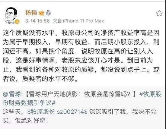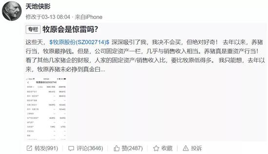 值得一提的是,该文能引发如此大的热度,不仅因为他质疑的是“猪中茅台”牧原股份,还与“天地侠影”的身份有关。