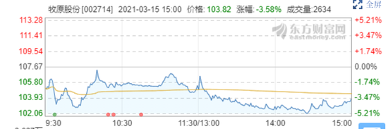 3月15日开盘,牧原股份低开低走,最终收跌3.58%,市值也跌破4000亿元。