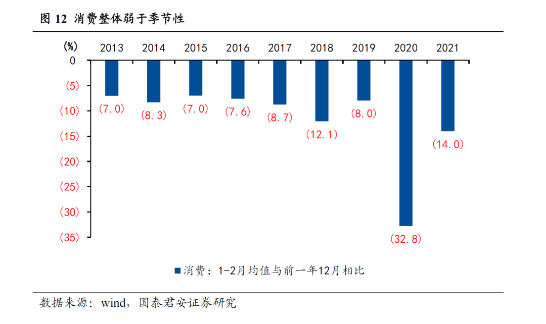 3.社零:消费大幅回落与年初疫情冲击和“就地过年”有关。环比增速明显弱于季节性,商品类消费是主要支撑,服务消费仍偏弱。分项来看,可选消费中汽车、家具表现突出。