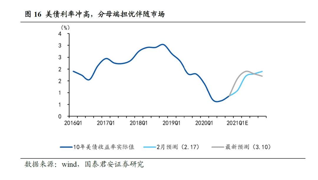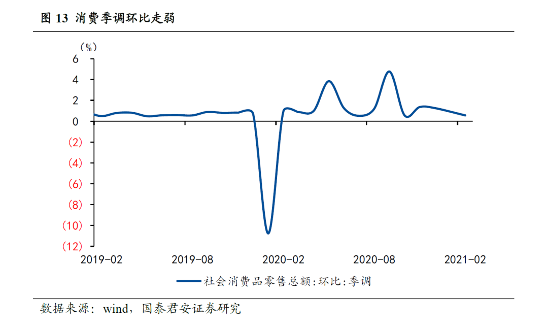 节奏上,我们认为出口与工业延续高景气,消费在二季度动能会有所回升,同时结合海外新增病例、疫苗推动以及政策落地情况来看,海外动能释放也可能加速,因此国内经济抬升在二季度会有新的催化,不排除二季度环比动能相对稳定,甚至边际重现上行的可能。