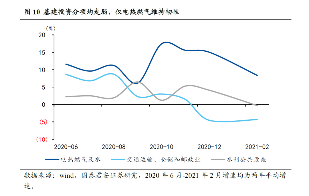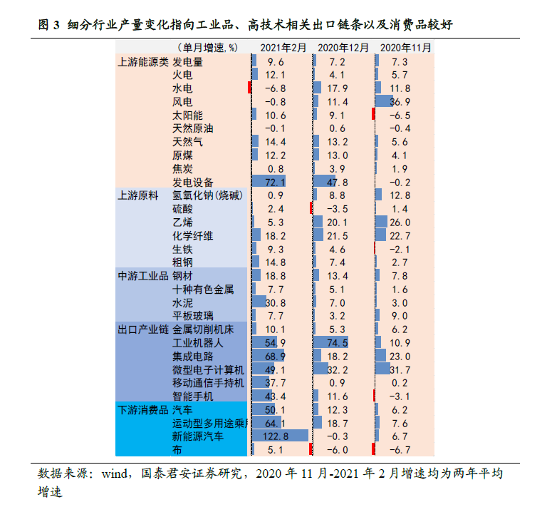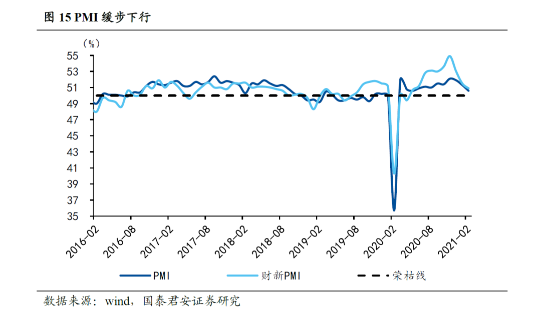 开年前两月经济动能整体偏弱,与2020年12月以来PMI缓步下行相一致,这其中包含疫情、冷冬以及小幅的政策缓退坡的影响。短期来看,经济边际动能改善点将源于消费修复、基建与制造业投资反弹,出口高景气仍然是核心支撑点。