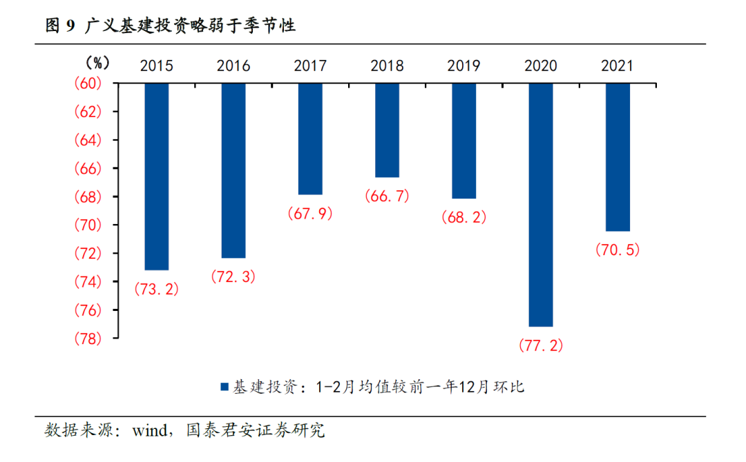 1-2月制造业投资大幅回落,不仅与社融中企业长期贷款表现高增存在背离,与PMI反应的企业高经营活动预期也存在背离,我们认为制造业投资未来仍会重回上行通道。