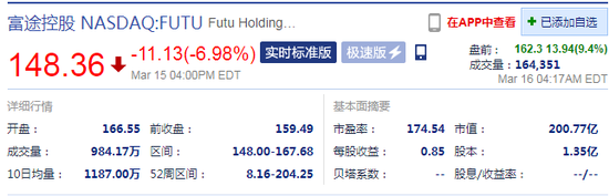 富途控股盘前涨近10%,财报显示,Q4总营收1.53亿美元(约11.9亿港元),同比增长282%,已连续四个季度实现同比三位数增幅。