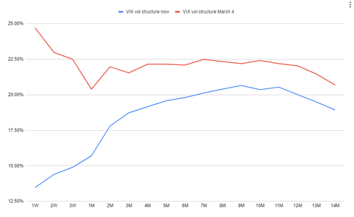 自7个月前标普500指数达到近期低点以来,VIX的期限结构已经大幅改变,短期便低,并为中长期溢价交易做好了准备。如果这次美联储出乎市场意料,那么整个VIX曲线可能会大幅变化,并将短期位置“重置”。