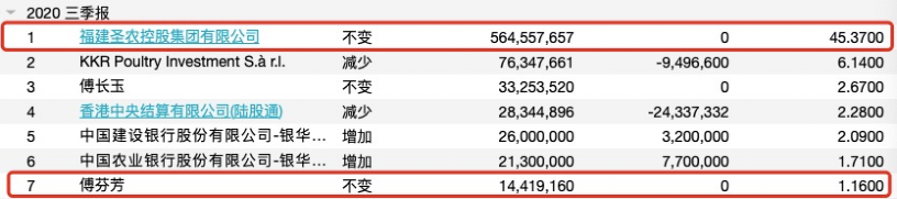 截至三季报,圣农发展共有5万名股东。在公司十大股东明细中,福建圣农控股集团有限公司为第一大股东,持股45.37%。本次转让完成后,圣农集团仍为公司的控股股东;傅芬芳仍为公司的实际控制人。本次转让不会导致公司控股股东和实际控制人变动。