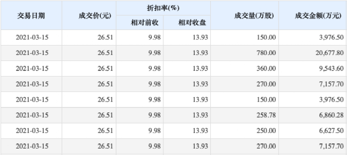 同时Wind数据显示,大宗交易方面,昨日圣农发展共计有8笔大宗交易,成交2488.78万股,成交价26.51元,成交金额共计6.59亿元。