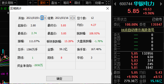 值得注意的是,作为碳中和板块的龙头股,截至今日收盘,华银电力已经连续7日涨停,3月以来,该股涨幅已经翻倍。