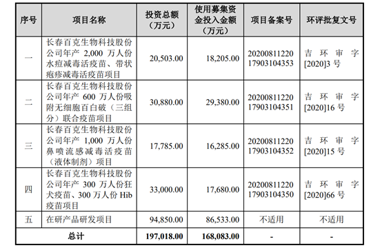 今年2月,长春高新公告百克生物科创板IPO申请顺利过会。据悉,百克生物本次公开发行股票的数量不超过4128.41万股,拟募集资金约16.81亿元,将用于“年产2000万人份水痘减毒活疫苗、带状疱疹减毒活疫苗项目”、“年产600万人份吸附无细胞百白破(三组分)联合疫苗项目”、“在研产品研发项目”等。