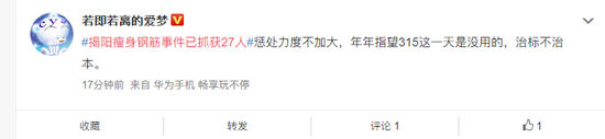 也有网友表示,惩处力度不加大,年年指望315这一天是没用的,治标不治本。