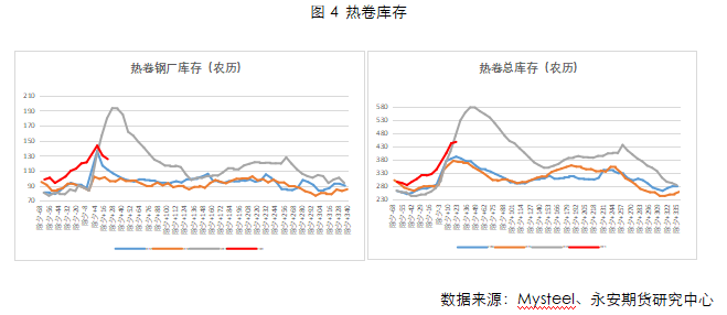 本周热卷供应MS小样本数据,超预期下降,降至312.36万吨/月,在当前利润水平下大部分钢厂主动减产意愿并不是很强,近期产量下降主要是受常规春季检修和北方限产共同影响,预计3月接下来的周均供应在这个量左右。但是预计四月产量将有所回升。