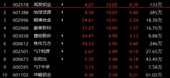 今日在顺博合金的带领下,有色铝板块彻底爆发,闽发铝业、怡球资源(维权)、豪美新材均涨停。其中闽发铝业也收获了2连涨停,最新股价为4.27元。