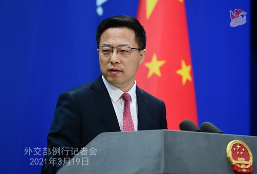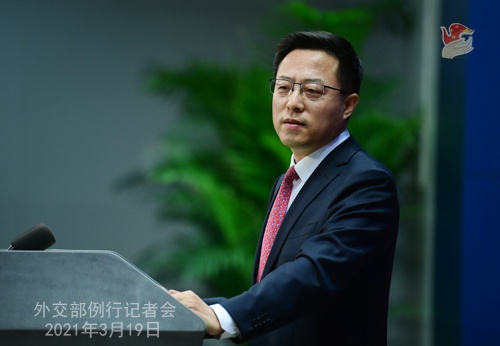 原标题:2021年3月19日外交部发言人赵立坚主持例行记者会