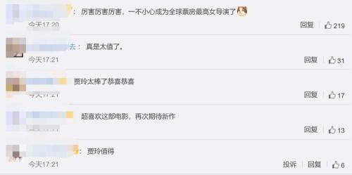 消息出来之后,#贾玲成为全球票房最高女导演#便迅速冲上热搜首位。