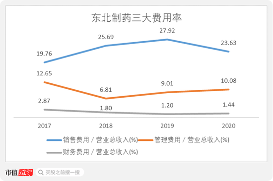 管理费用也让东北制药的利润雪上加霜。2020年管理费用率为10.08%,对应的管理费用为7.44亿。