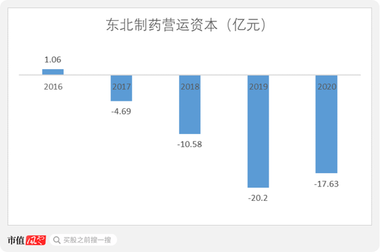 2018年方大集团接手后,东北制药的营运资本日益恶化。