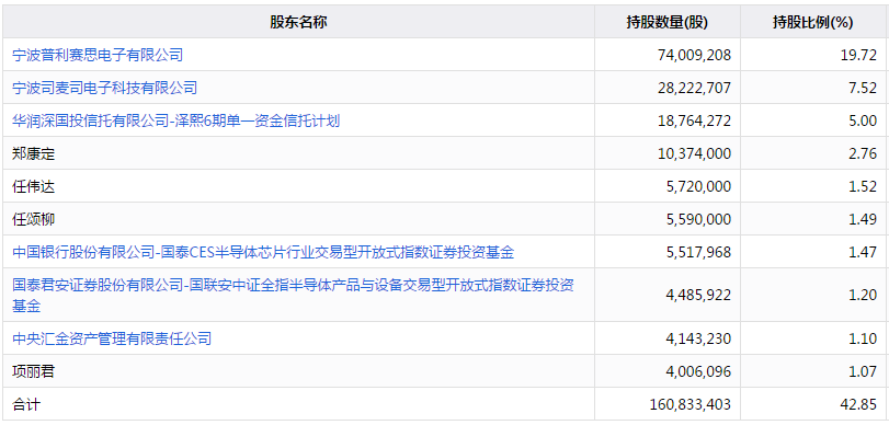 康强电子十大股东持股情况(截至2020年三季度末)